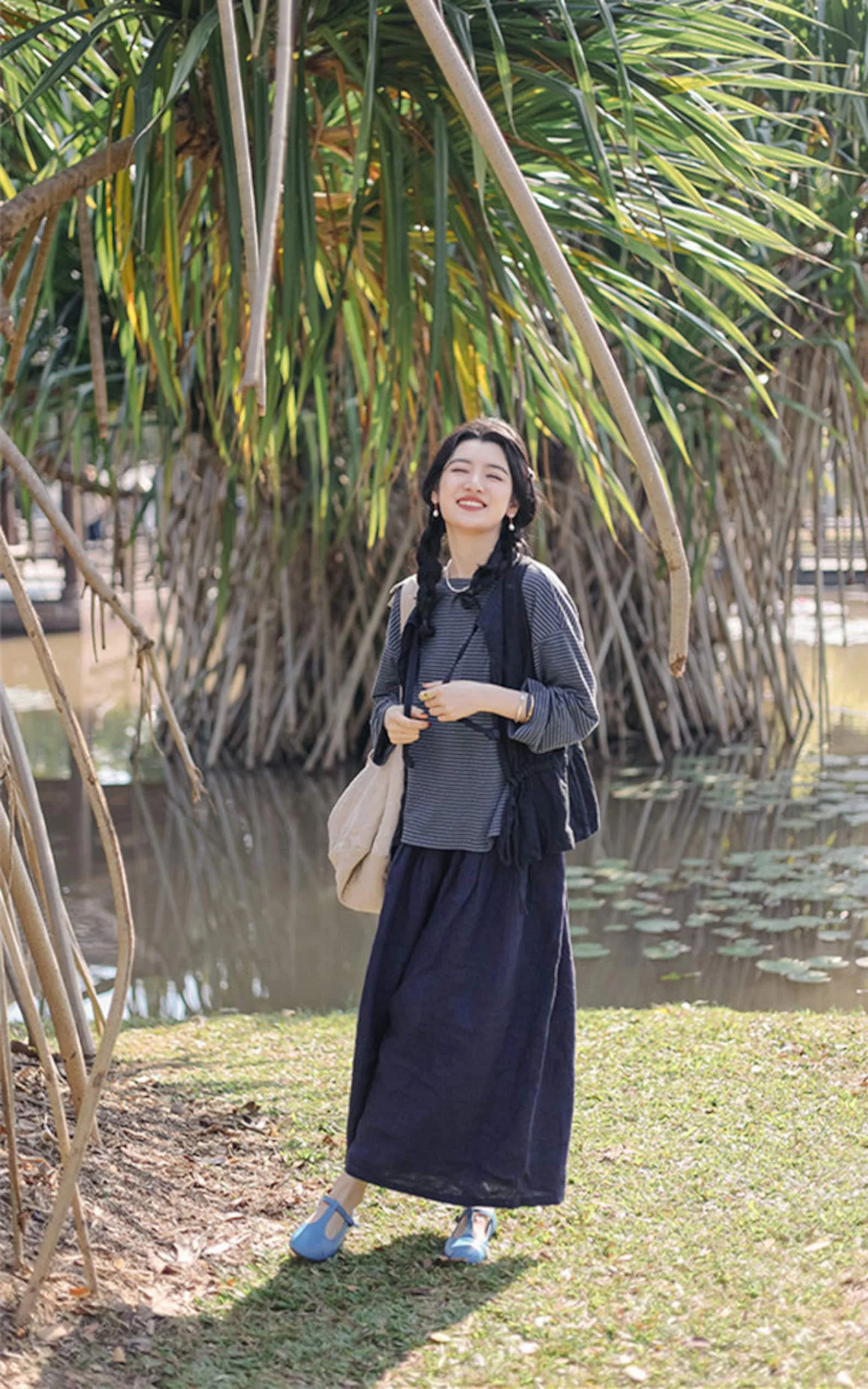 Custom Women's Natural Waist Straight Wide Leg Pants Casual Retro Trousers Elastic Waist Belt Button Big Sizes Linen Woven