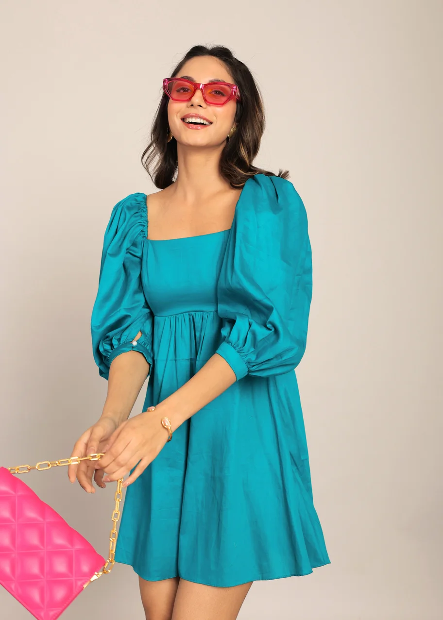 New Trending Summer Maxi Dress for Women Sky Blue Solid Bust Fitted Skater Short Mini Sexy and Casual for Young Girls