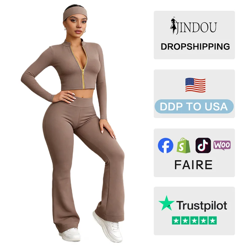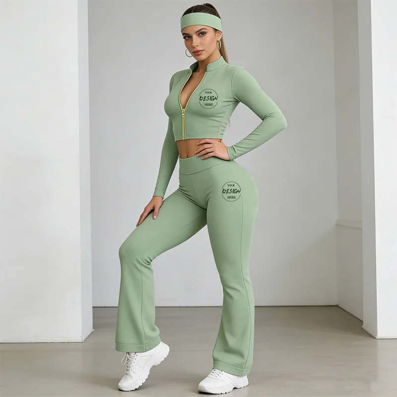 Y2K Style Custom Logo Women's Sportswear Set Full-Zip Jacket & Flared Pants for Gym Fitness Active Wear