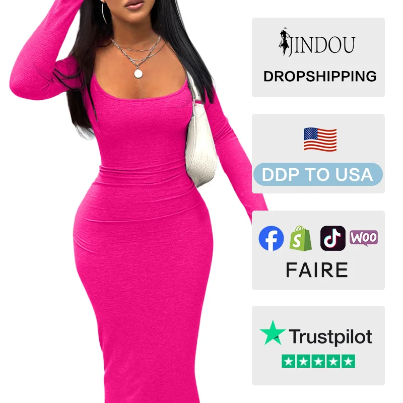 Hot Selling Cross Border Dress 2026 Spot Sales Solid Color With Small Pit Stripe Fashion Casual Wear
