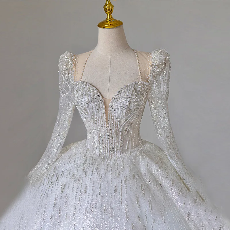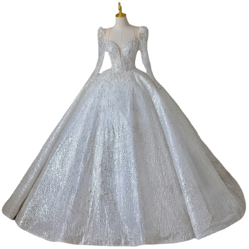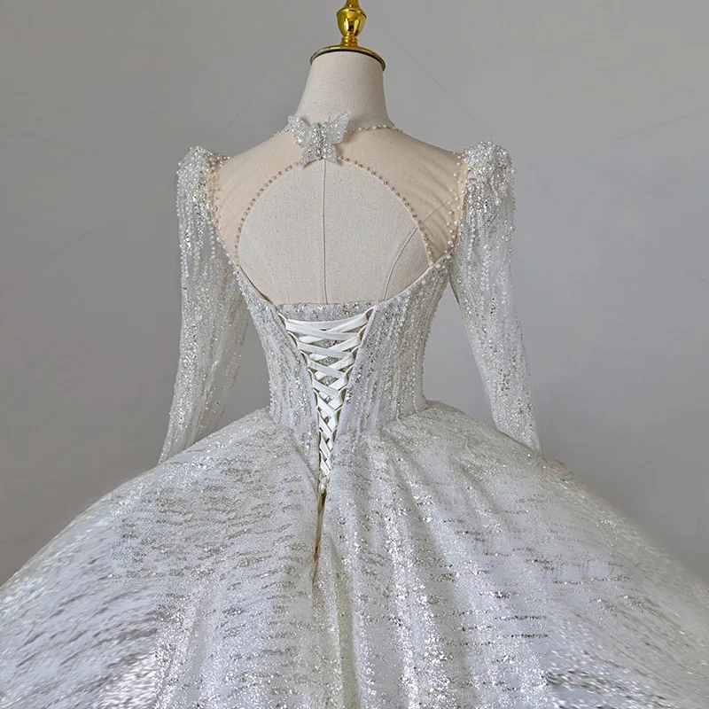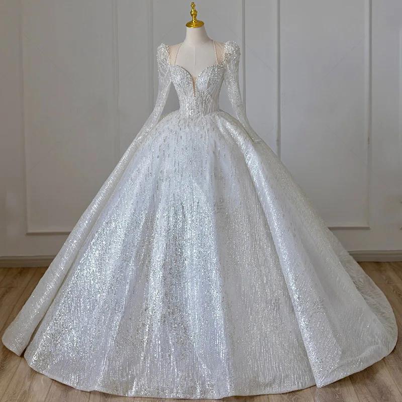 Shining Long Sleeve Ball Gown Wedding Dress Backless Sequin Wedding Dress Beading Bridal Gowns Plus Size Dresses