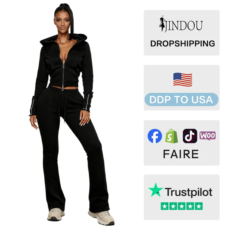 Women's Custom Logo Embroidered Sport Pants with Zipper Hooded Long-Sleeved Top Two-Piece Set