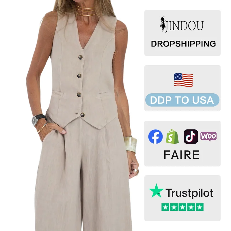 Fashion Two-Piece Tank Top & Wide-Leg Pants Set-Spring/Summer Women's Casual Office Wear