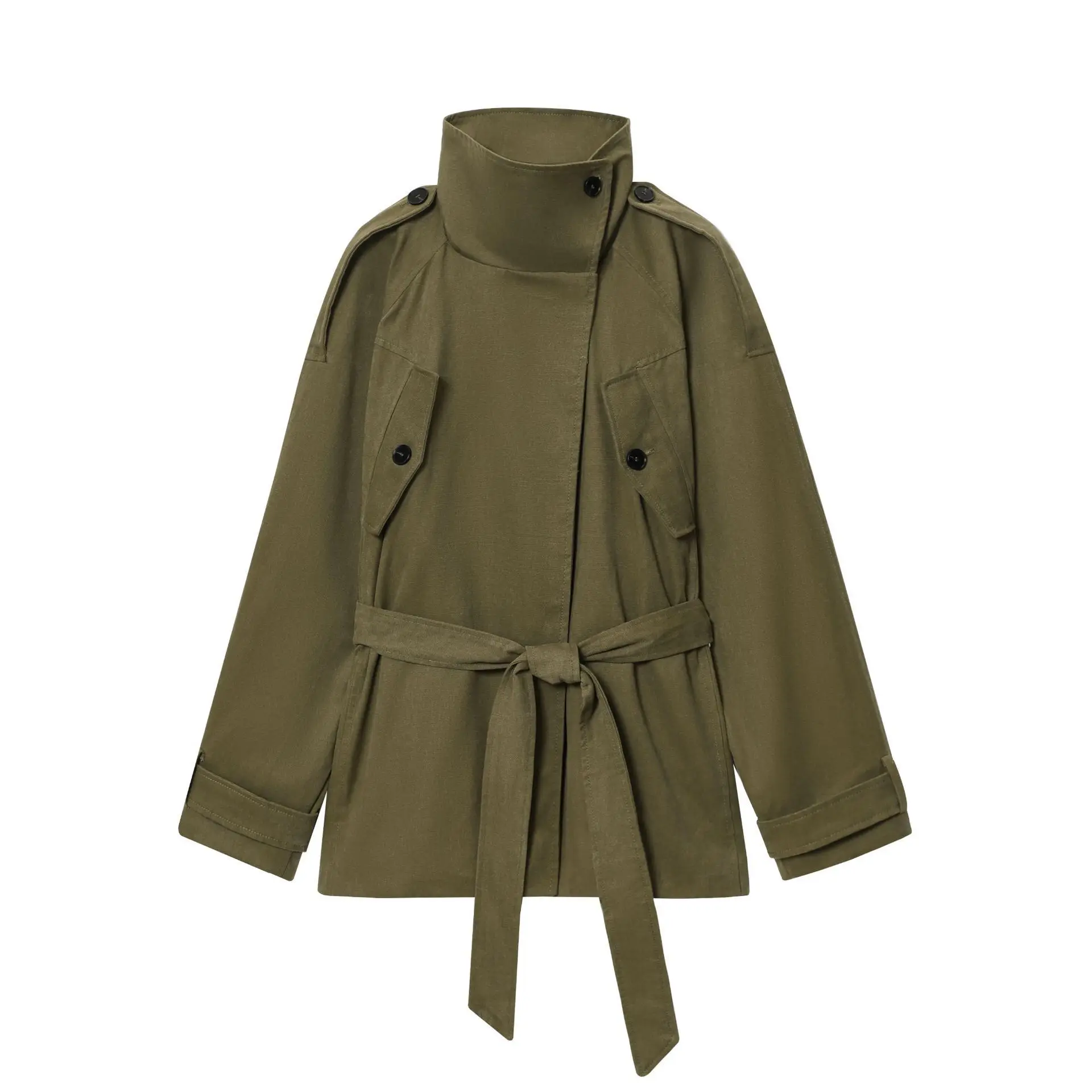 Women 2026 Spring New Fashion Belt Trench Coat Vintage Long Sleeve Pockets All-match Casual Female Outerwear Chic Overcoat