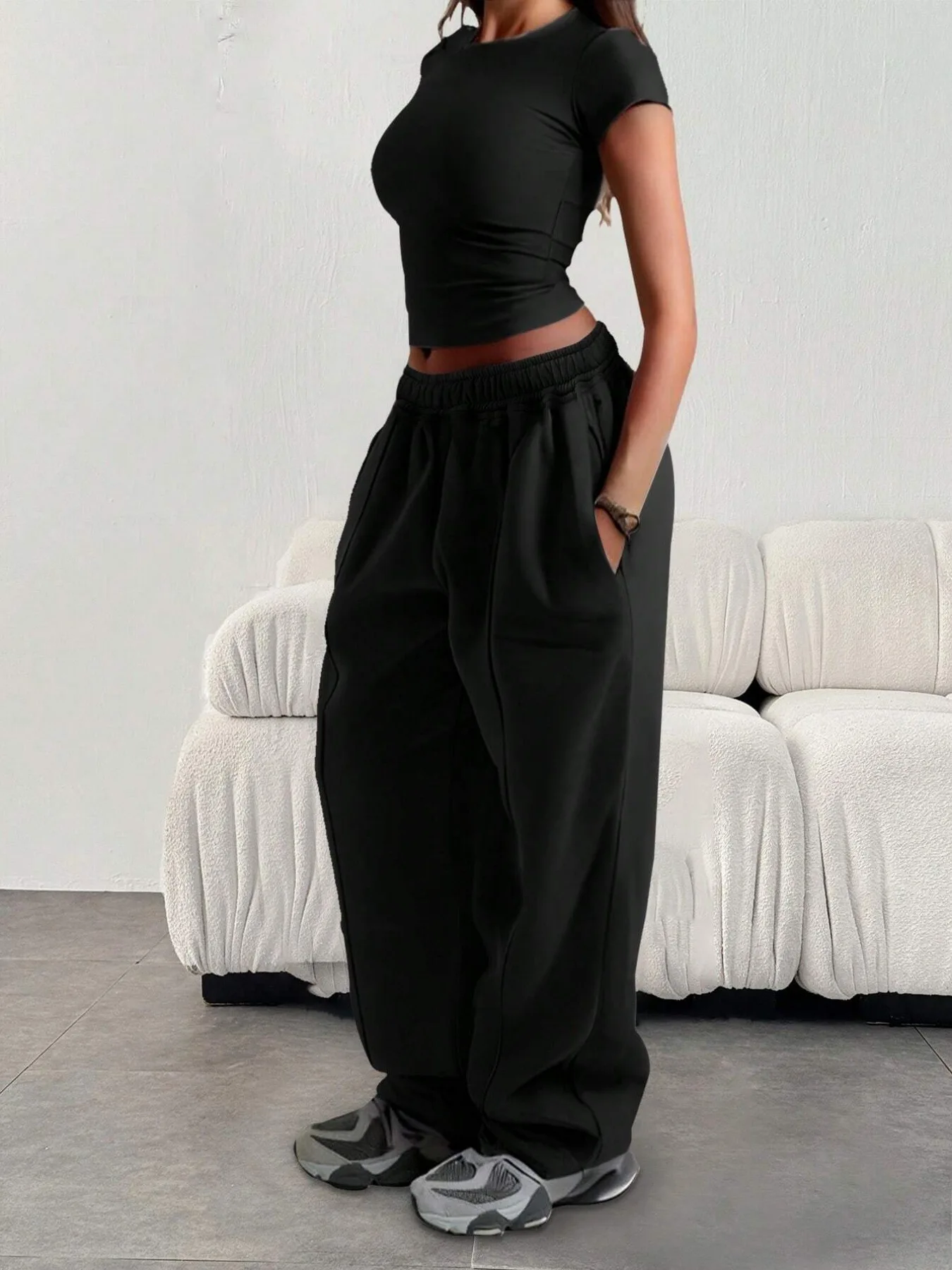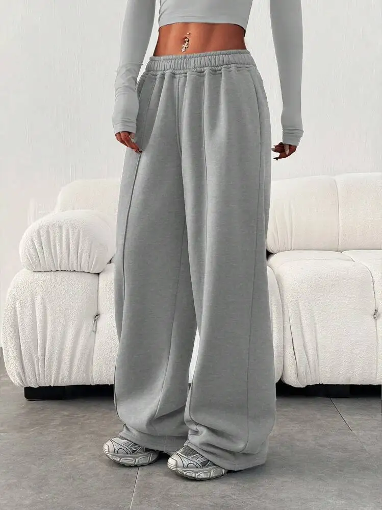 2026 New Spring Women's High Waist Wide Leg Pants Regular Fit Solid Color Pants Oversized Wide Leg Jogger With Cotton Fleece