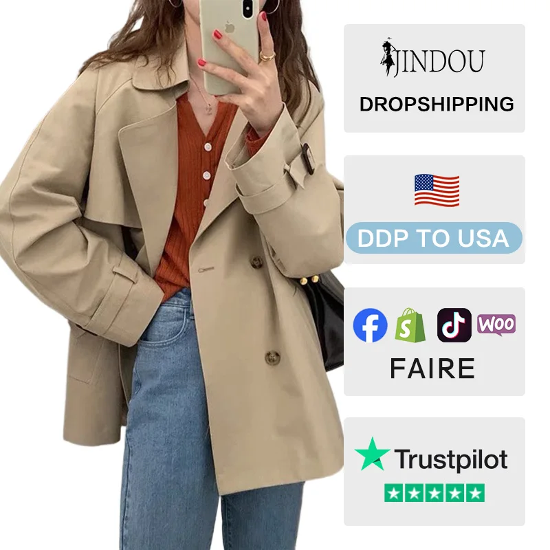 2026 Spring Boutique Autumn Women's Double Breasted Eco-Friendly Trench Coats New Korean Style Long Sleeve Short Windbreaker
