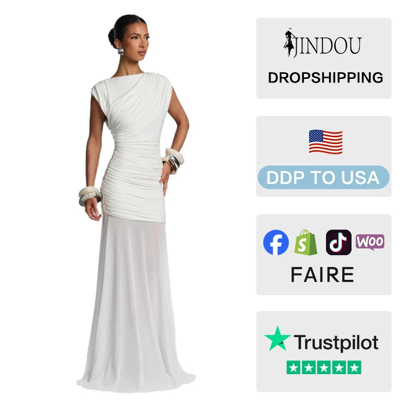 ZYHT 73849 European Wholesale Fashion Casual One Shoulder Ruched Maxi Dress Side Slit Pleated Long Sleeve Dresses for Women