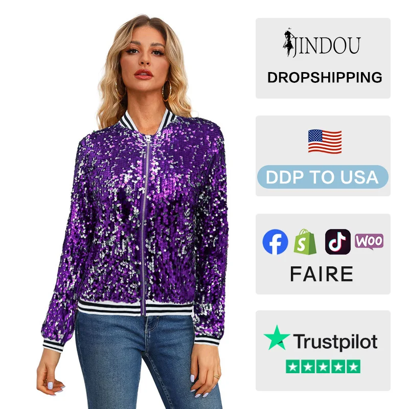 Women Sequined Celebrity Short Coat Breathable Long Sleeve Zipper Fashion Jacket New Slim Fit Lady Spring Autumn Shiny