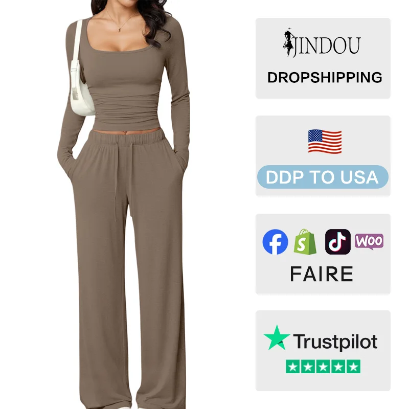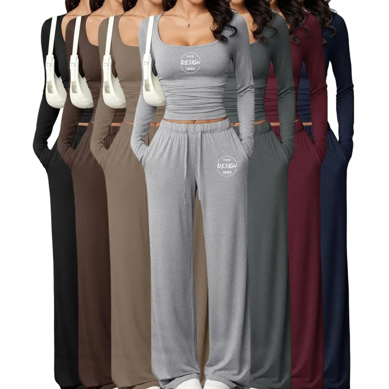 Custom Logo New 2026 Women Casual Pants Suit Square Collar Long Sleeve Short Top Women's Sportswear Tracksuit