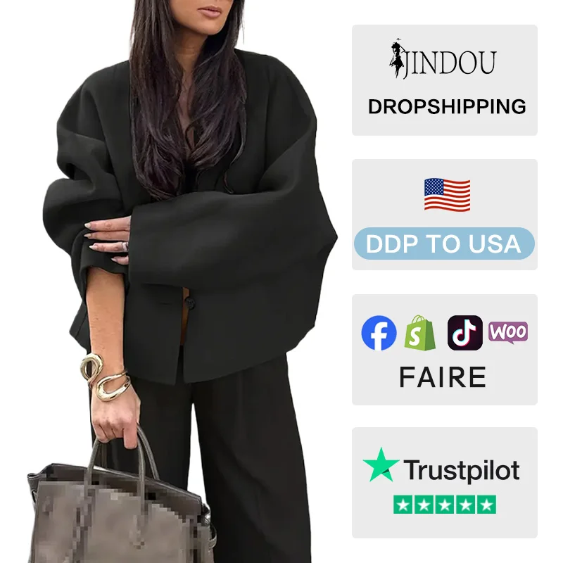 New Style Elegant Women's Loose Casual Winter Coat Black Office Jacket