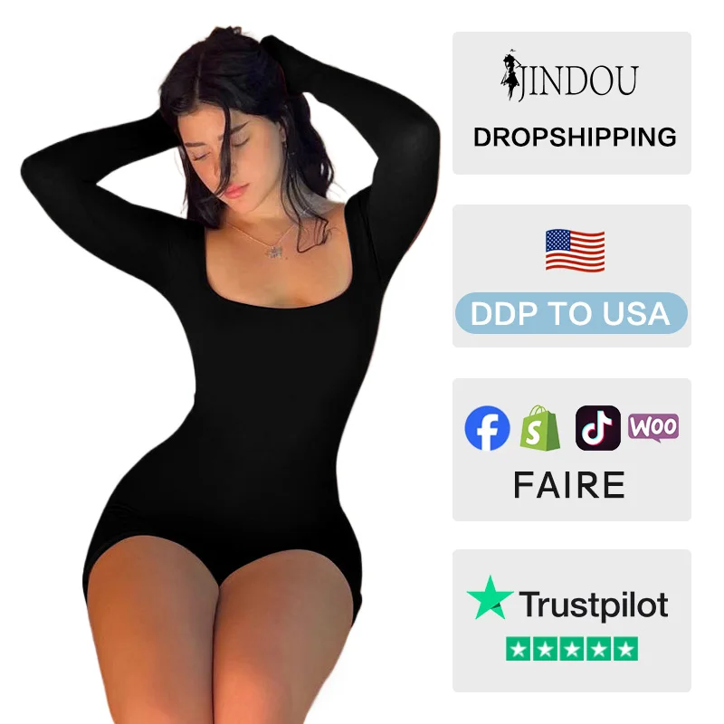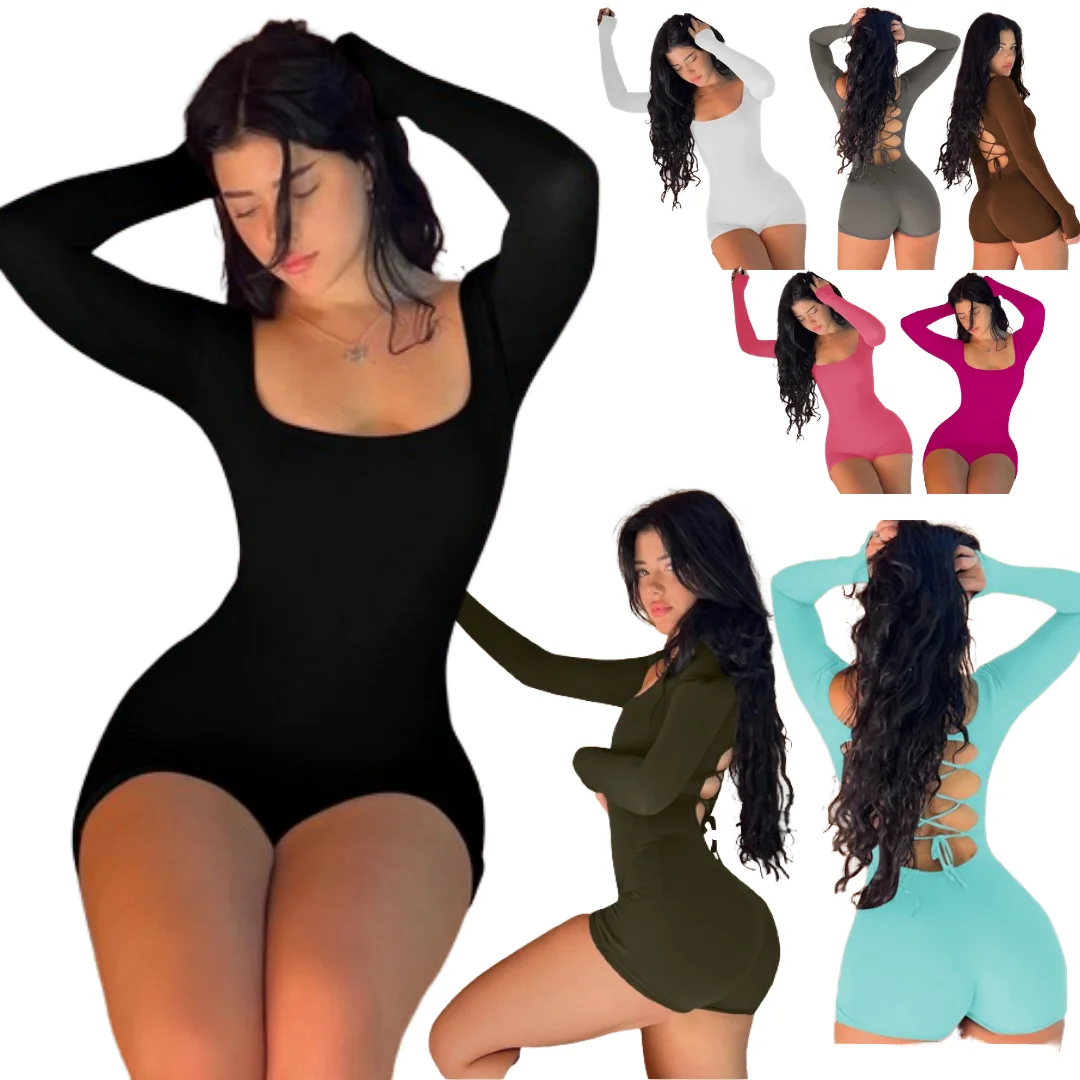 Ladies Square Neckline Long Sleeve Straps Design Backless Knee Jump Suits Casual High Waist Hip Wrap Solid Color Breathable Yoga