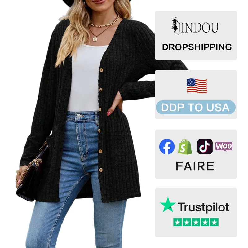 Women 2026 Spring Knitwear New Ground Pit Strip Solid Color Long Sleeve Elegant Knit Cardigan Long Sweater Coat
