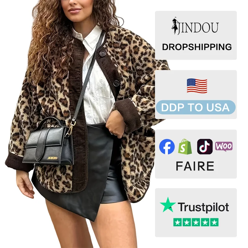 Women's Autumn/Winter American-Style Animal Print Casual Loose Thin Cotton Wool Outerwear Jacket