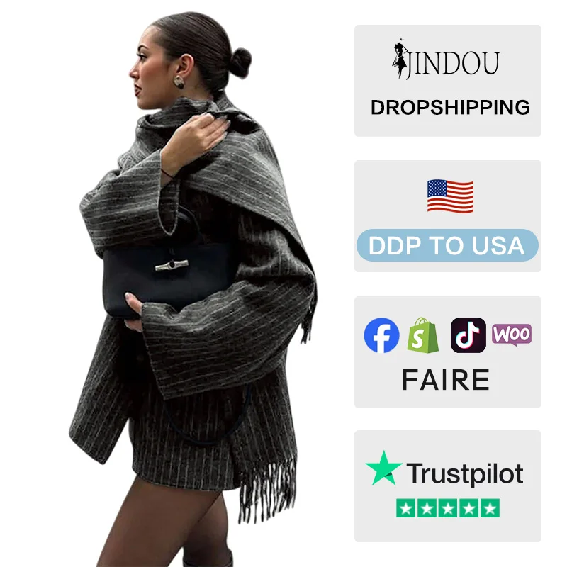 Fall/Winter Women's Fashion Stylish Striped Wool Scarf & Coat-Loose Fit Warm Design