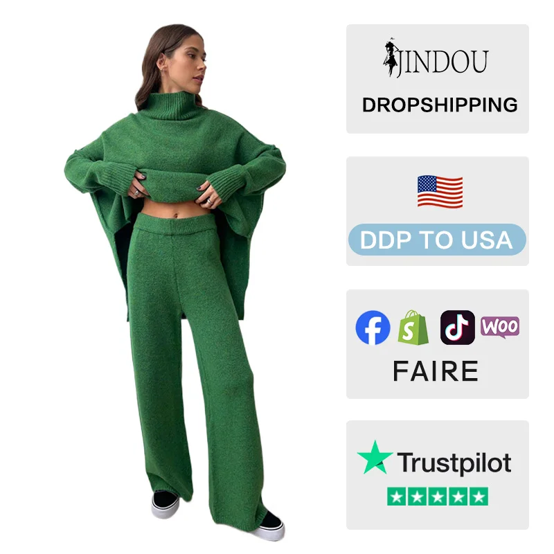 2026 Spring and Autumn New O-Neck Woven Terry Long Ankle Plain Dyed Sweater Set Women Regular Casual Lazy Thick Knit Pants Set