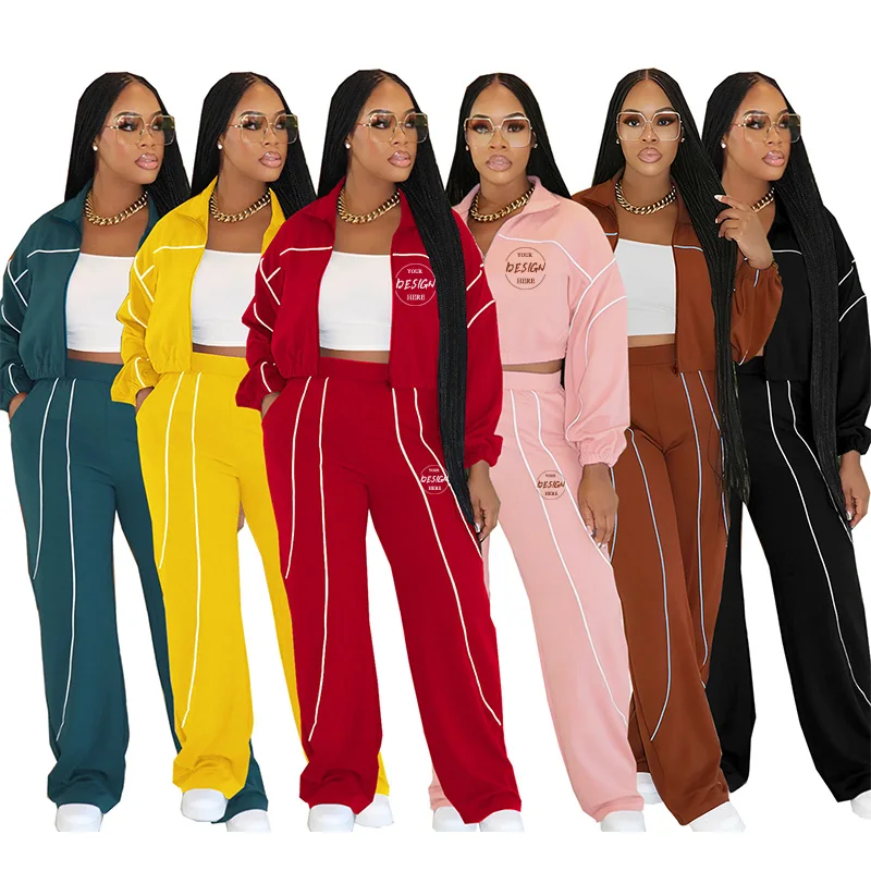 Custom 2026 New Fashion Women's Contrast Color Patchwork Side Stripe Long Sleeve and Long Pants Set Casual Sports 2 Pieces Set