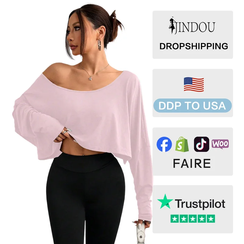 Women's Y2K Style Breathable Eco-Friendly Summer Solid Long-Sleeved Crop Top Loose Fit Cotton Knitted Fabric
