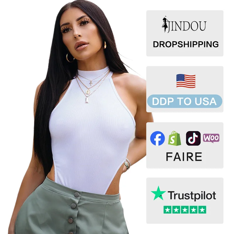 2026 Spring Women Custom Logo Bodysuit New Casual Jumpsuit Sexy Halter Neck Sleeveless High Slit Fitted Tank Bodysuits