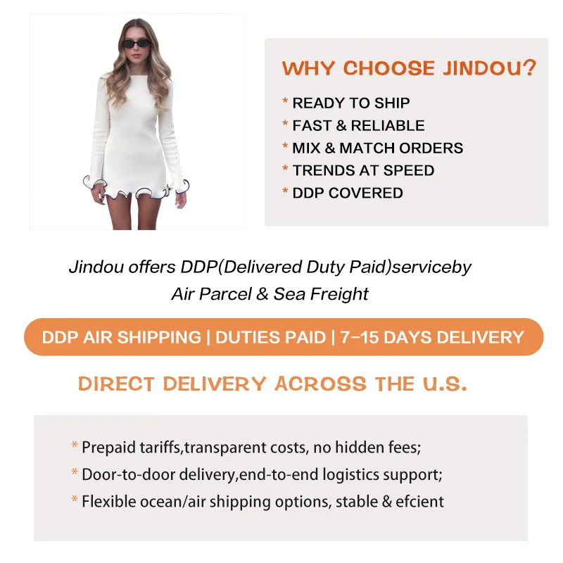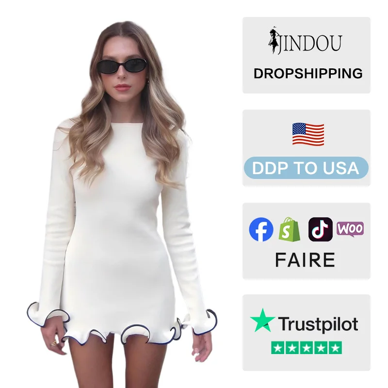 2026 Spring Women Custom LOGO Mini Dress Trendy Ruffle Edge Dress Rolled Edge Knitted Skirt Sexy Tight Short Dress for Lady