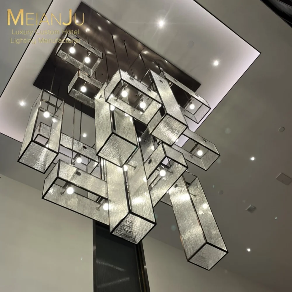 Zhongshan Modern Premium Indoor Hanging Lamp Light Fixtures Premium Glass Box Chandelier for Home Hotel Decor Lighting