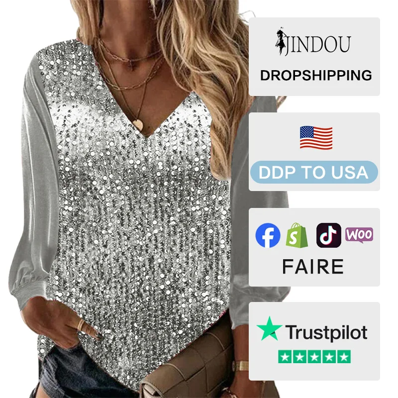 Women's New Stand Collar Regular Fit Gold Velvet Sequin Embroidery Solid Casual Autumn Party Shirt Long Sleeves