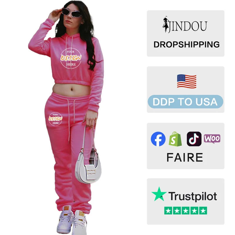 Custom Logo Women 2 Piece Sweatsuit Set Stacked Joggers Sweatpants Hoodie Tracksuit Athletic Gym Sportswear Fashion