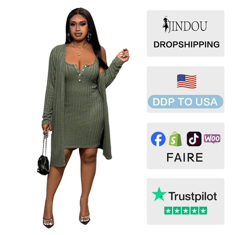 Women's Elegant Fashion Two-Piece Set Autumn New Plus Size Casual Solid Pattern Knee V-neck Short Knit Cardigan Dress Daily Wear