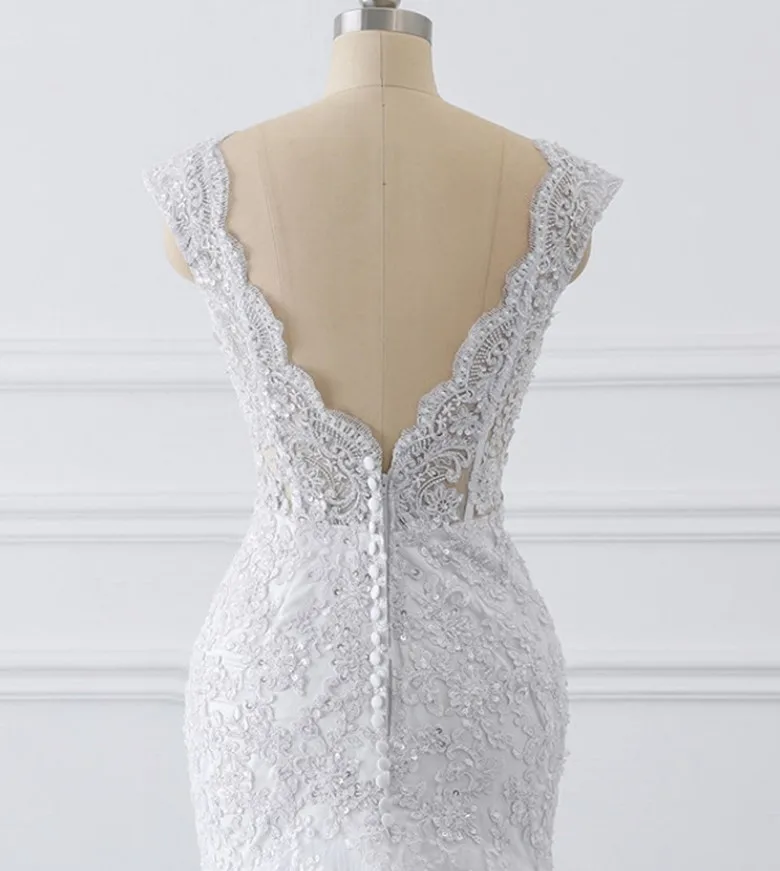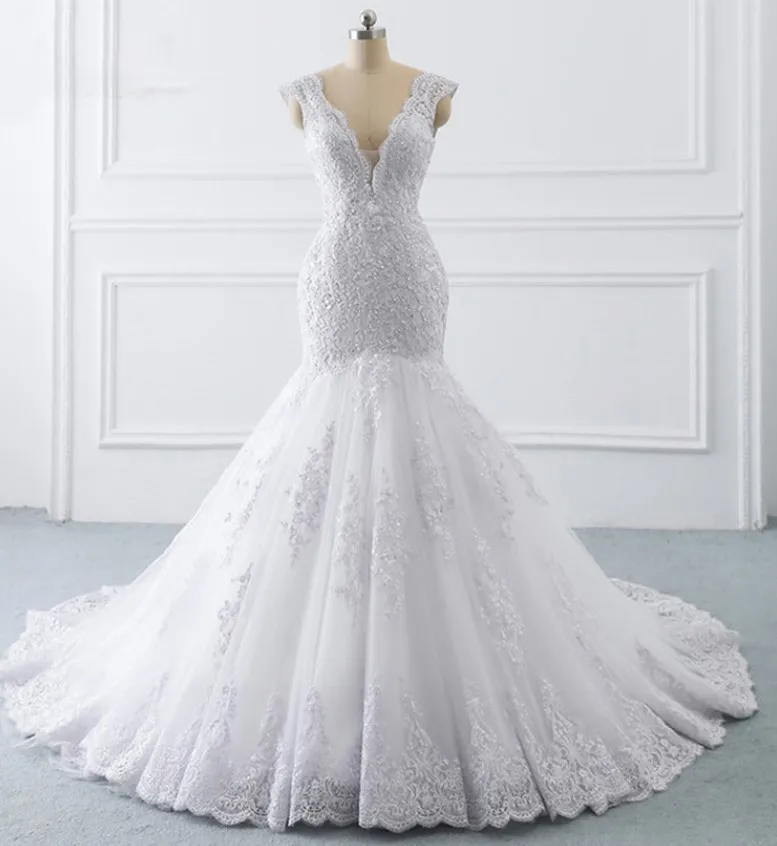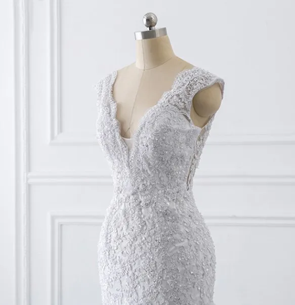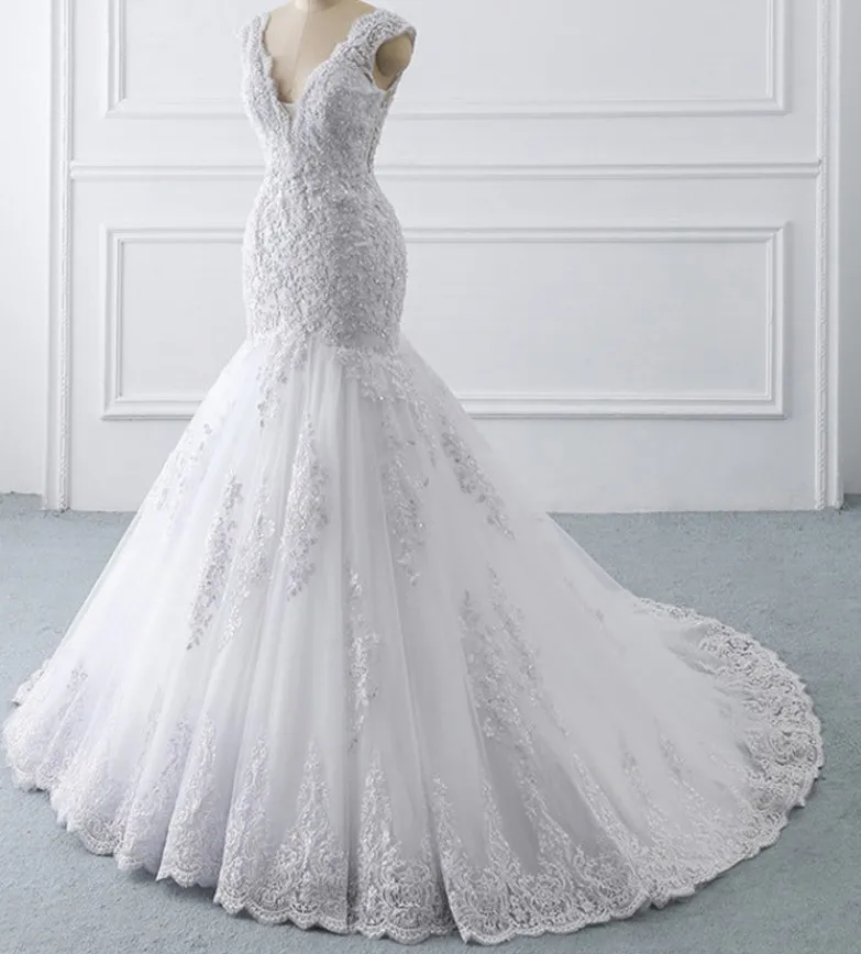 New Design Hot Sale Sexy Deep V-neck Sleeveless Mermaid Wedding Dresses Gowns Bridal Plus Size Lace Wedding Dress