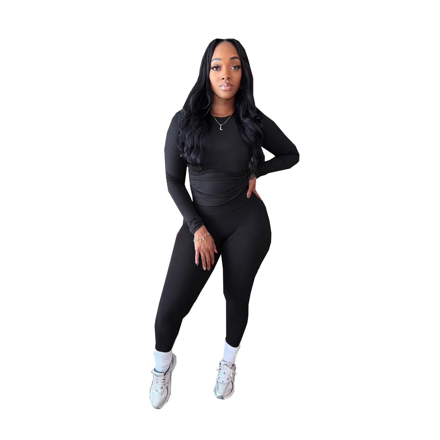 Custom Logo Women Clothing 2 Pieces Outfits Solid Ribbed Long Sleeves T Shirt Legging Pants Set Sweatsuit Set