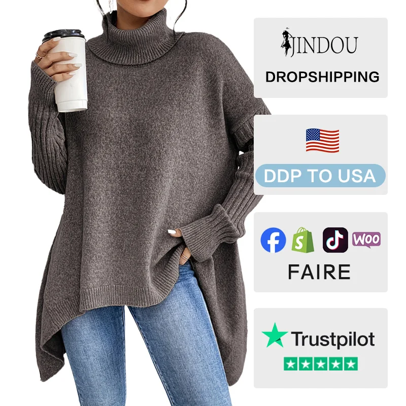 Autumn Women's Casual Loose-Fit Regular Turtleneck Chunky Flat Knitted Polyester/Cotton Anti-Pilling Quick Dry Sweater