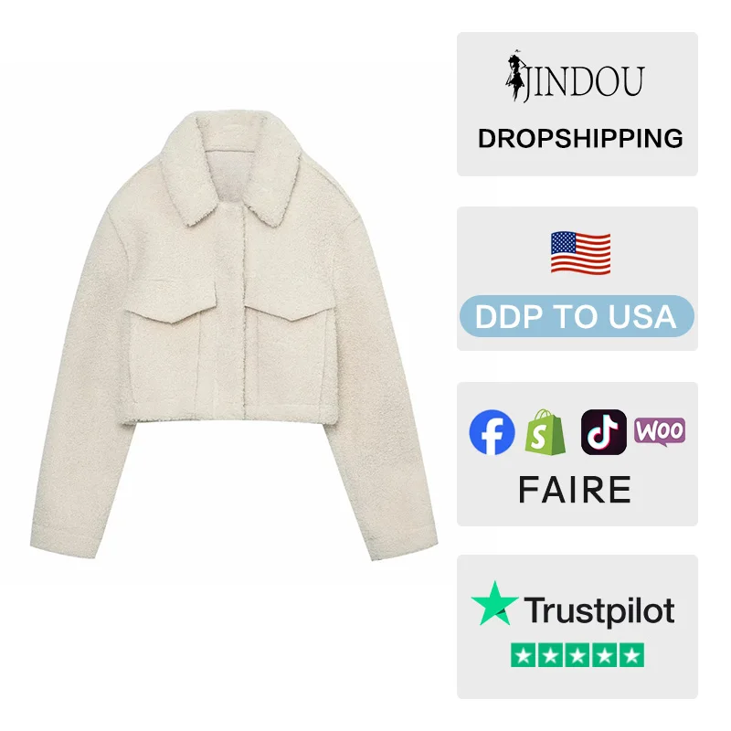 Women New Fashion Thick Fleece Short Shirt Coat Vintage Long Sleeve Casual Breathable Button Chic Overcoat