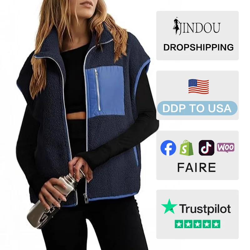 2025 New Arrival Women's Fleece Jacket Vest Sleeveless Plush Button-Up Collar Zipper Loose Casual Autumn Top Jacket