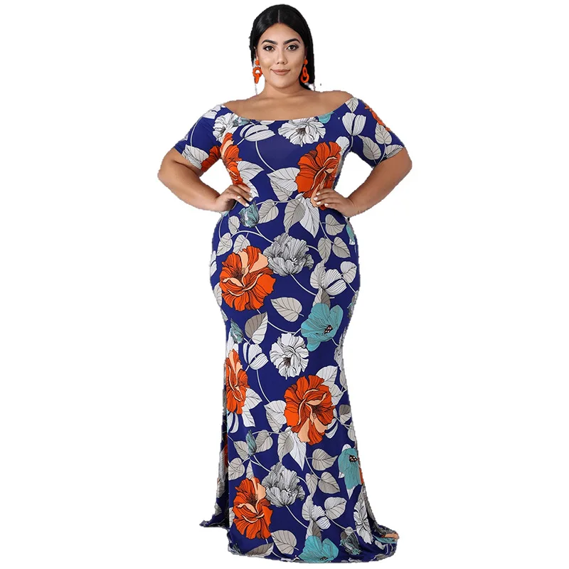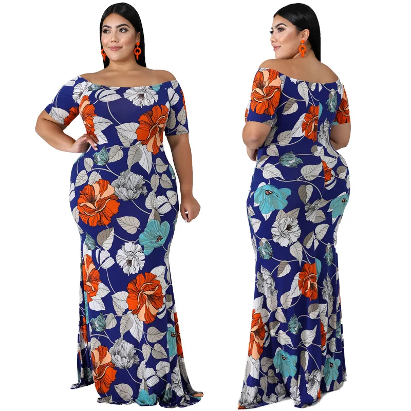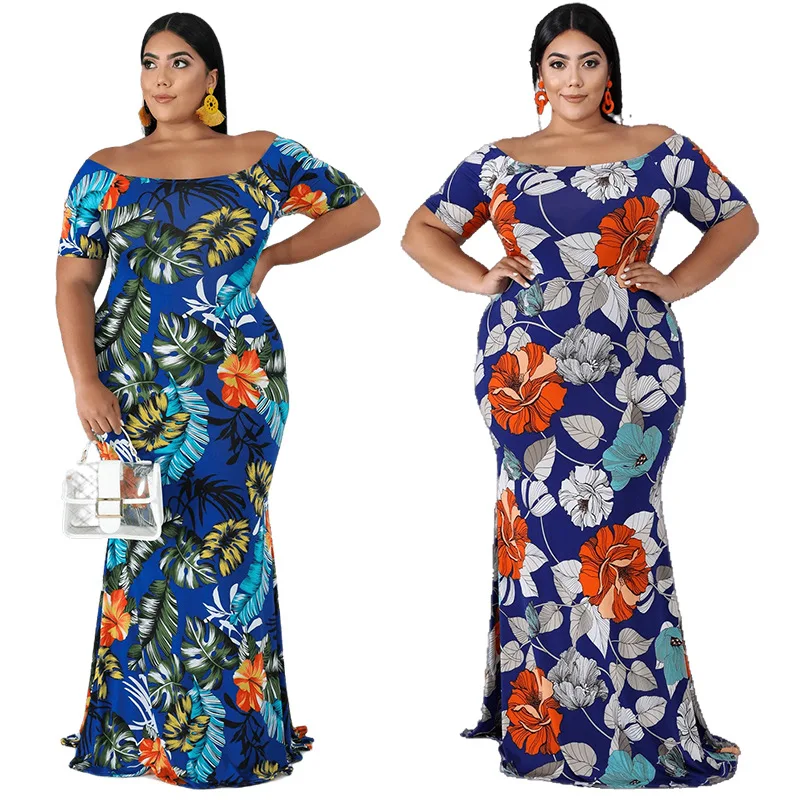 Plus Size Women Clothing 4xl 5xl Floral Layered Off Shoulder Plus Size Women's Dresses