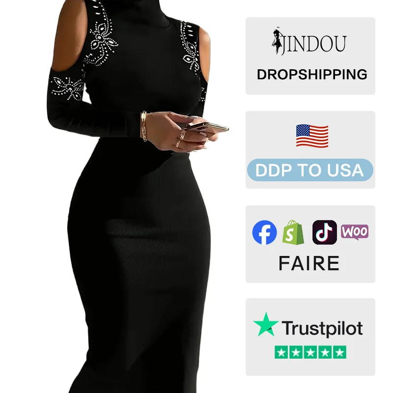 Black Off-Shoulder Luxurious Crystal Long Evening Gown Elegant Sexy Women's Tight-Fitting Party Club Dress