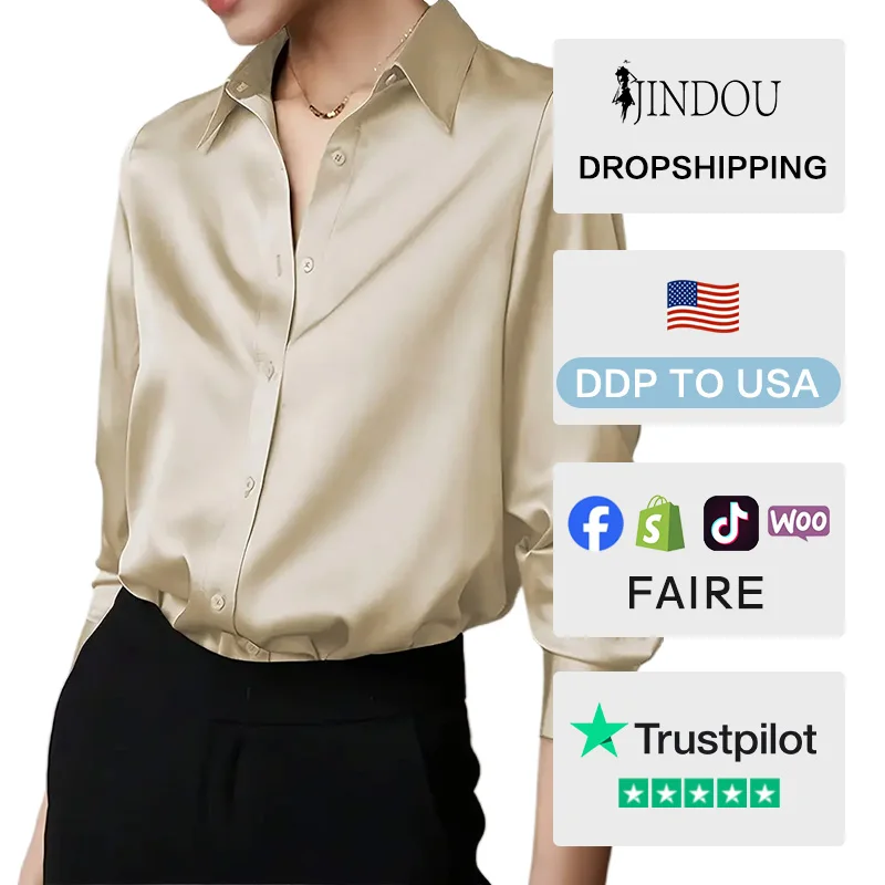 Women's Drapey Blouse-Stylish Niche Top with Sophisticated Look Anti-Wrinkle Acetate Satin Silk Texture Autumn Style