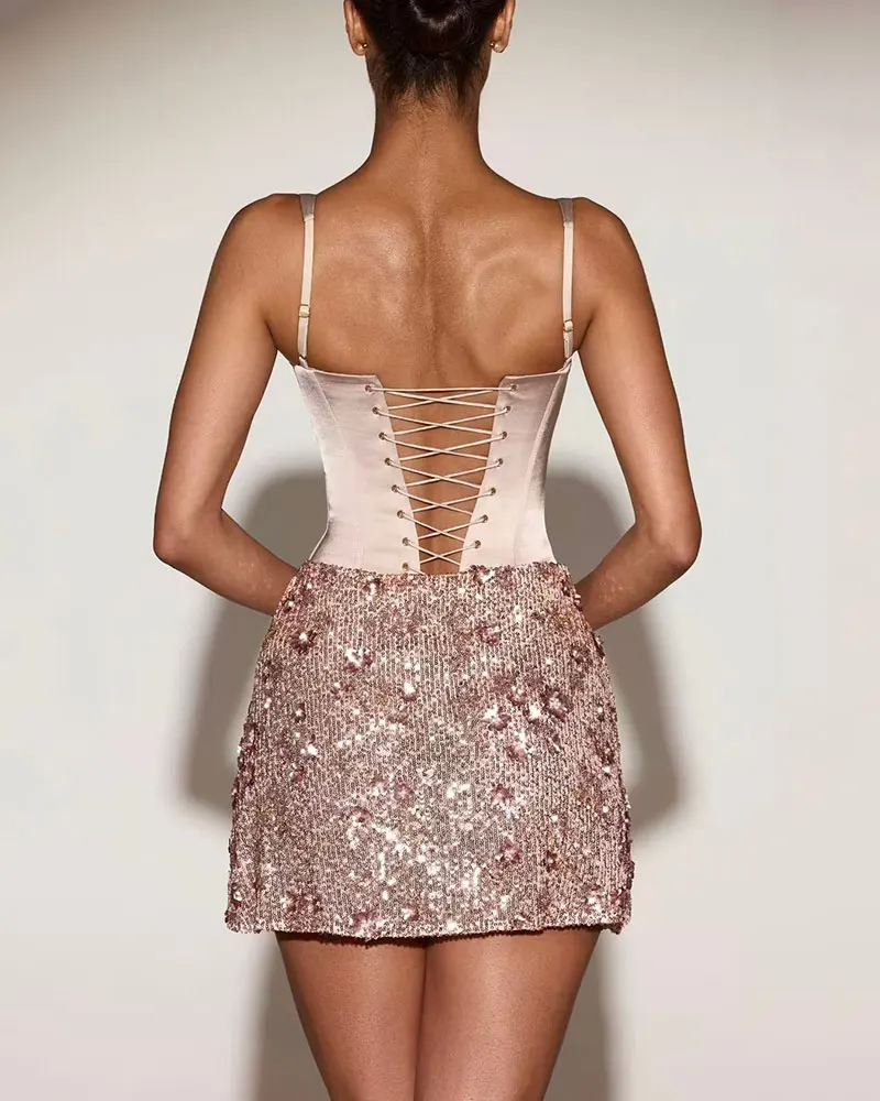 Sequins Backless Mini Dress Women Sleeveless Slim Elegant Prom Gowns Sexy Bodycon Club Party Dresses