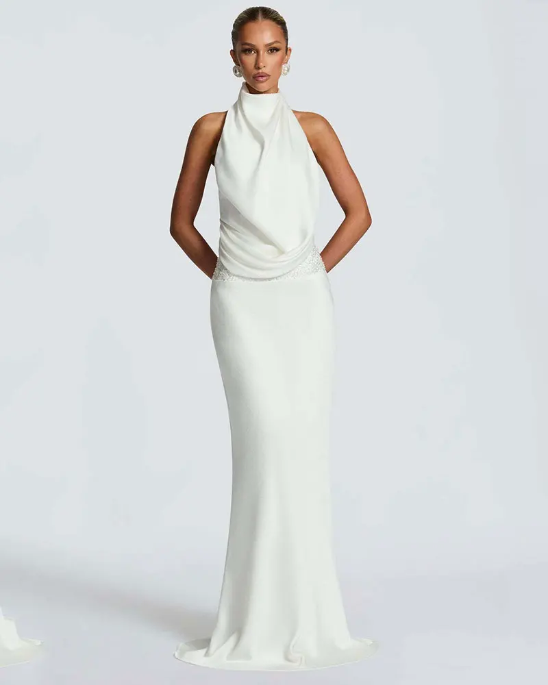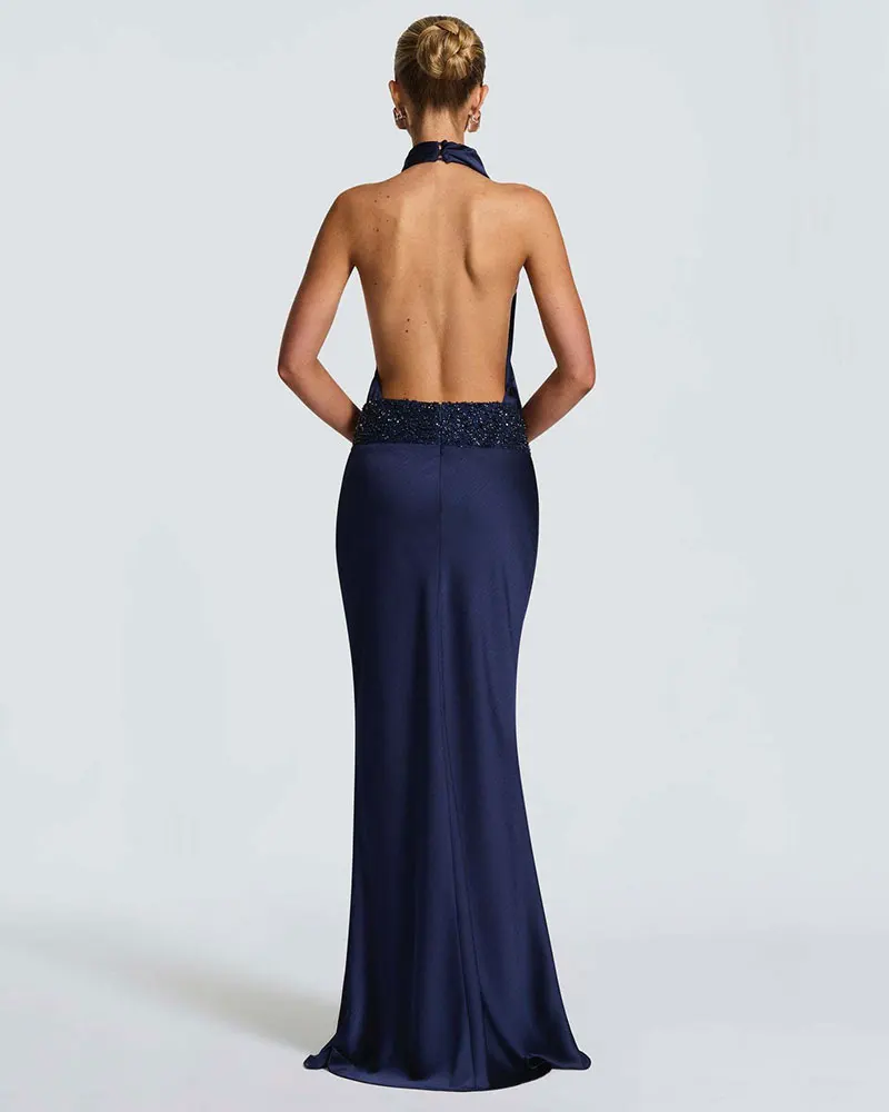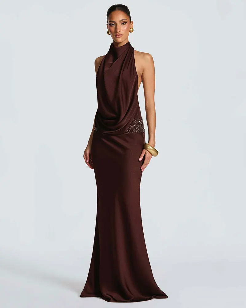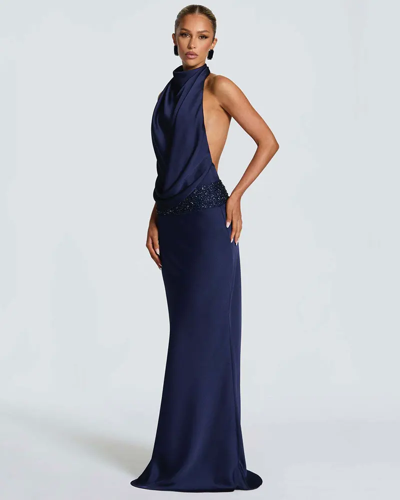 Sequins Halter Sexy Maxi Dress for Women Fashion Elegant Turtleneck Bodycon Prom Club Party Long Dress