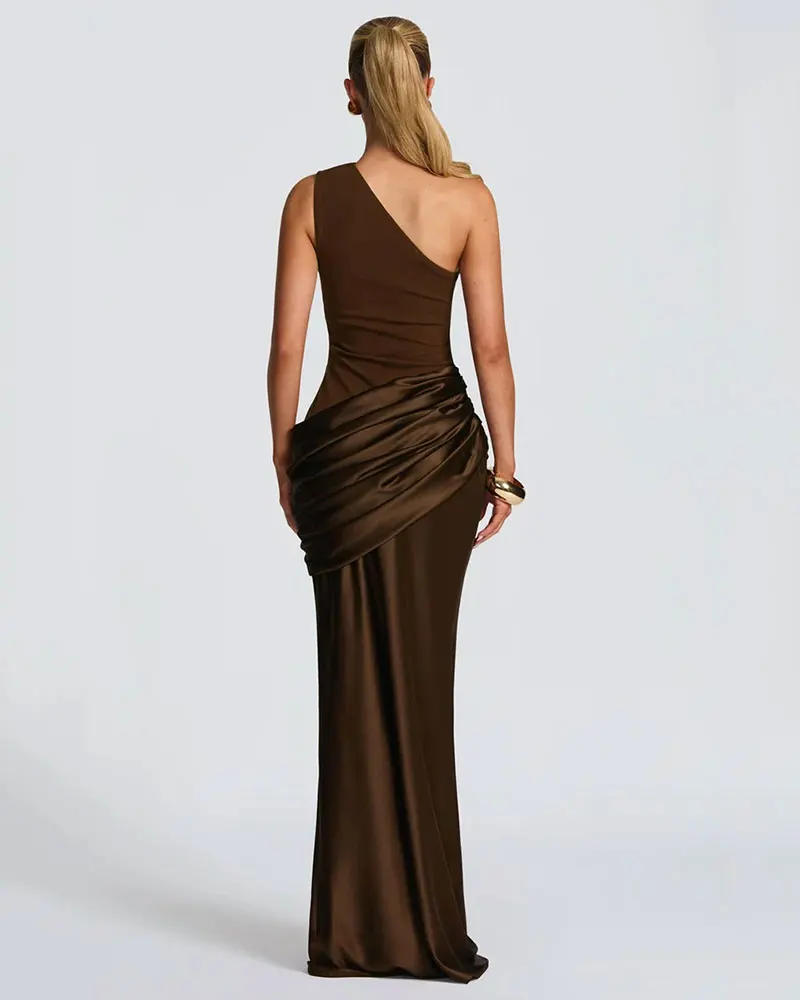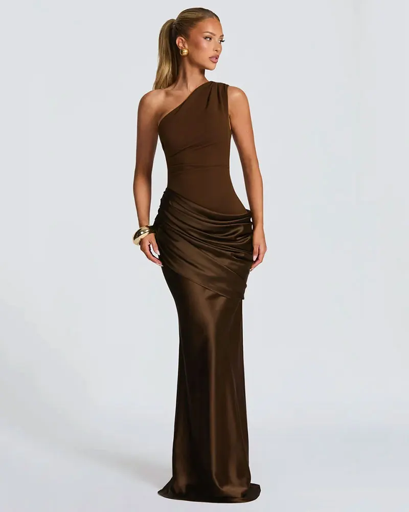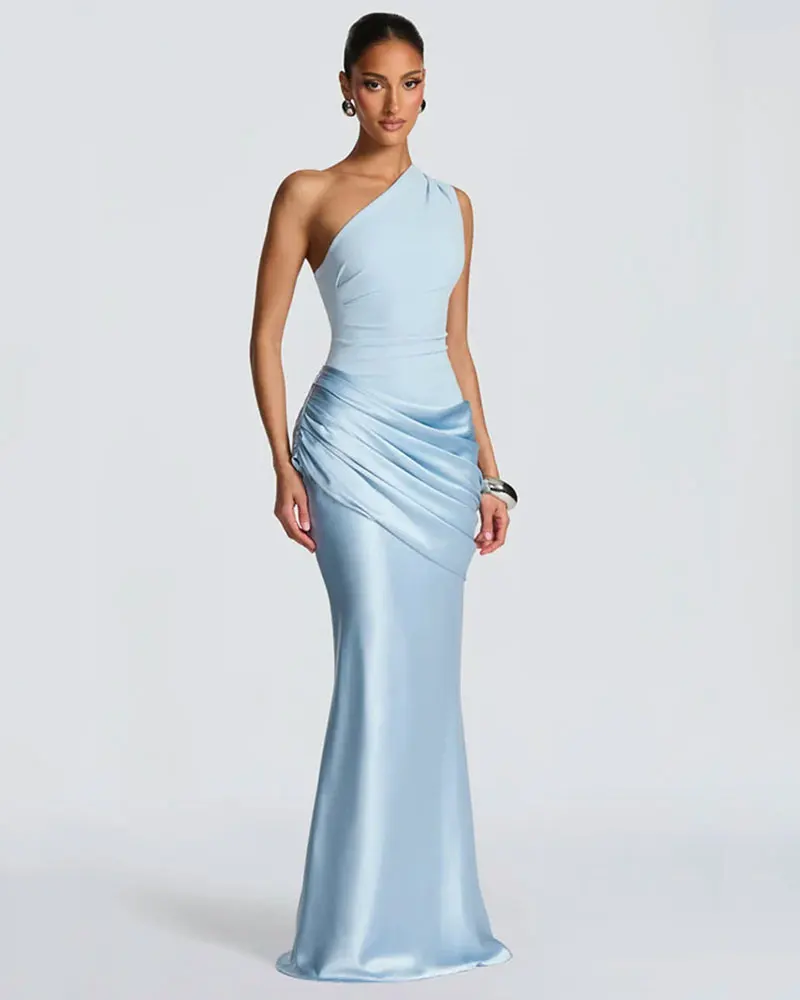 One Shoulder Backless Sexy Maxi Dress Women Gown Elegant Patchwork Skew Collar Sleeveless Bodycon Club Party Long Dress