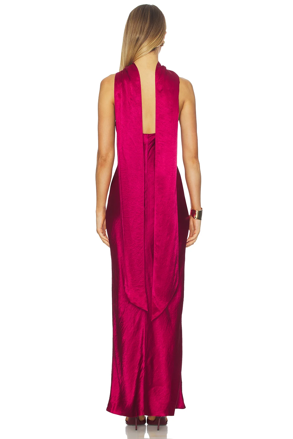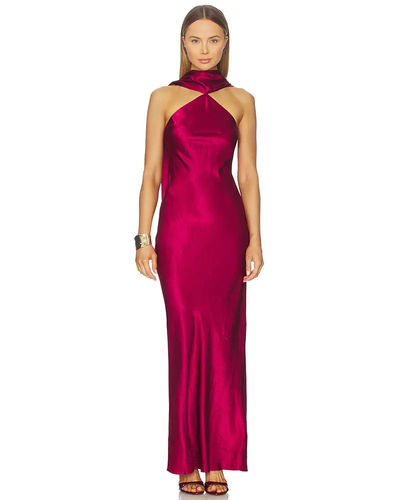 Pleated Textured Satin Maxi Dress Women Halter Backless Club Party Long Dress