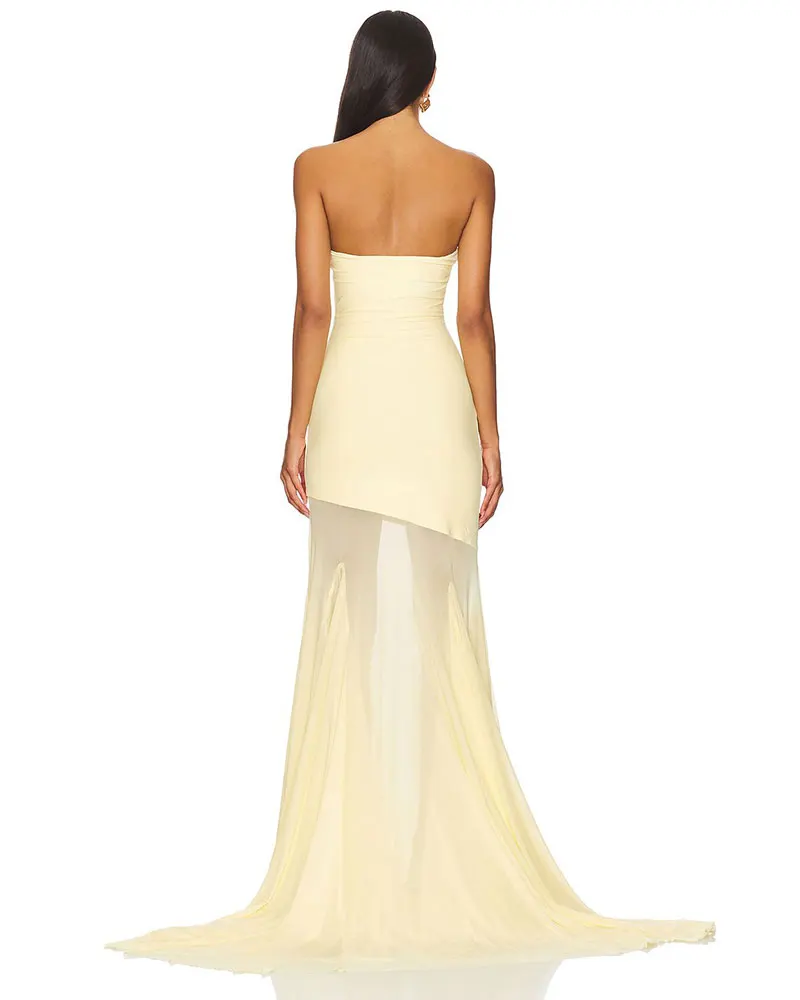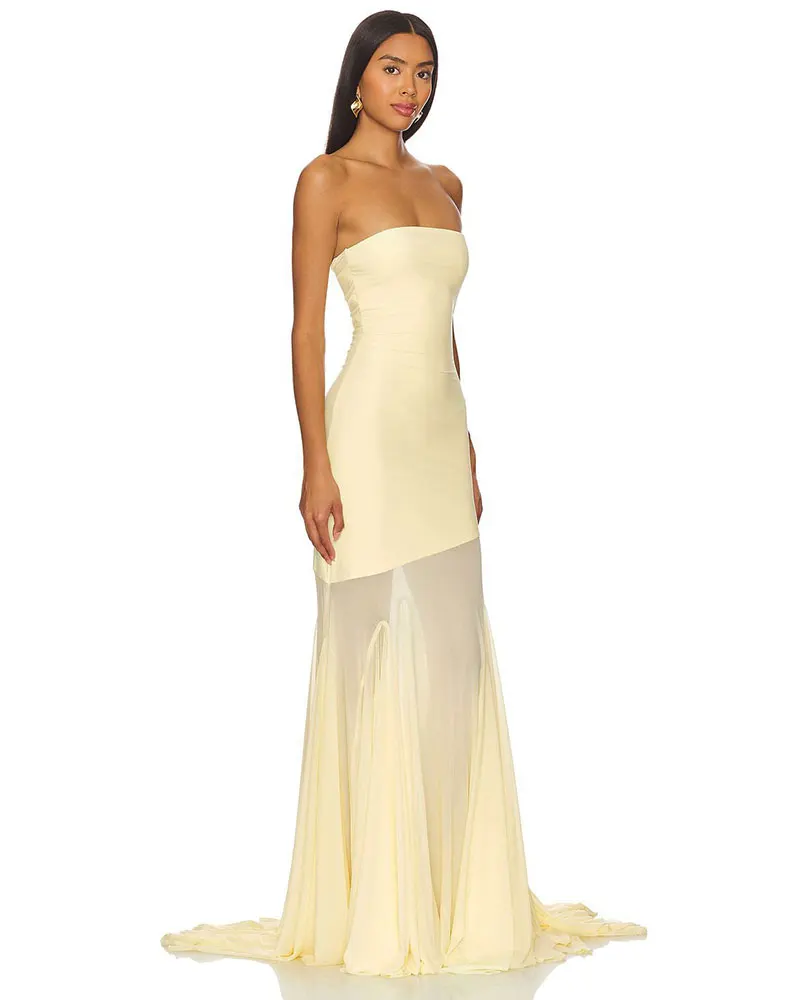 Elegant Mesh Patchwork Strapless Maxi Dress Off Shoulder Slim Summer Sexy Bodycon Women's Club Party Evening Long Dress