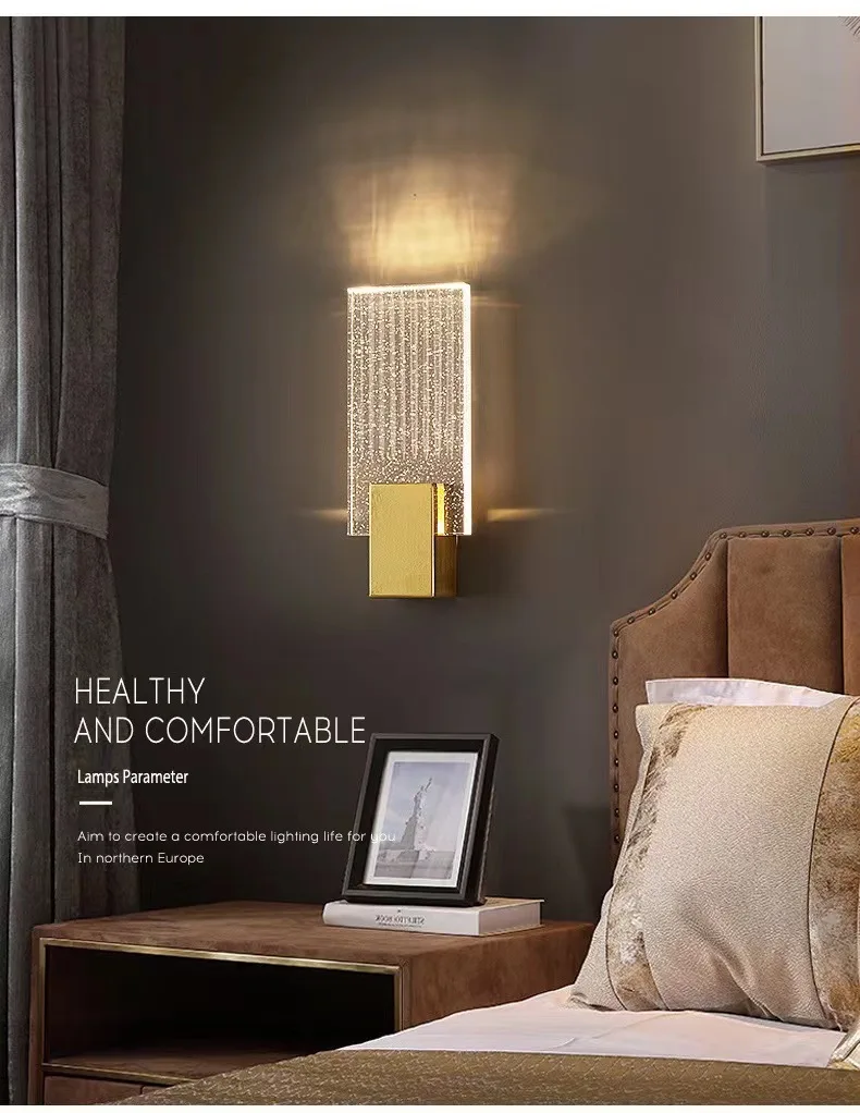 JACKSUN Crystal Wall Lamp Simple Iron Sconce Light Golden Wall Lamps 3000K for Bedroom Dining Room Kitchen Apartment