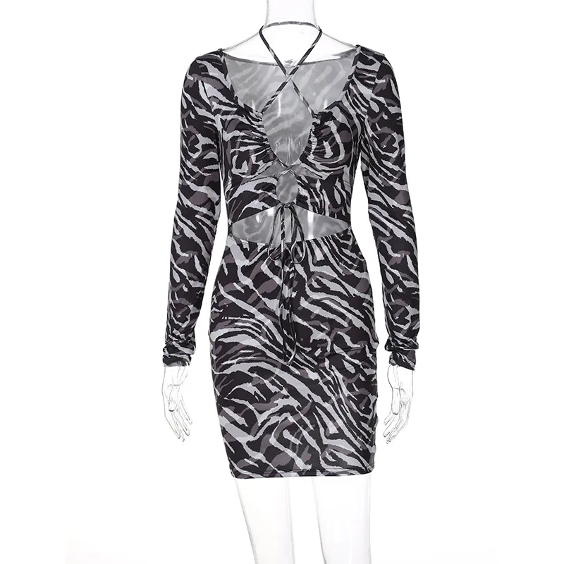 Print Long Sleeve Mini Dress Bodycon Sexy Streetwear Party 2022 Summer Spring Women Clothes Y2K