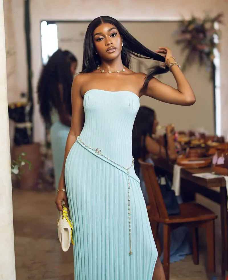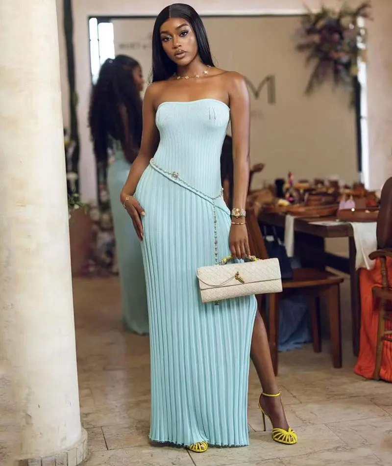 Elegant Knitted Strapless Maxi Dress for Women Off-shoulder Sexy Bodycon High Slit Club Party Long Dresses
