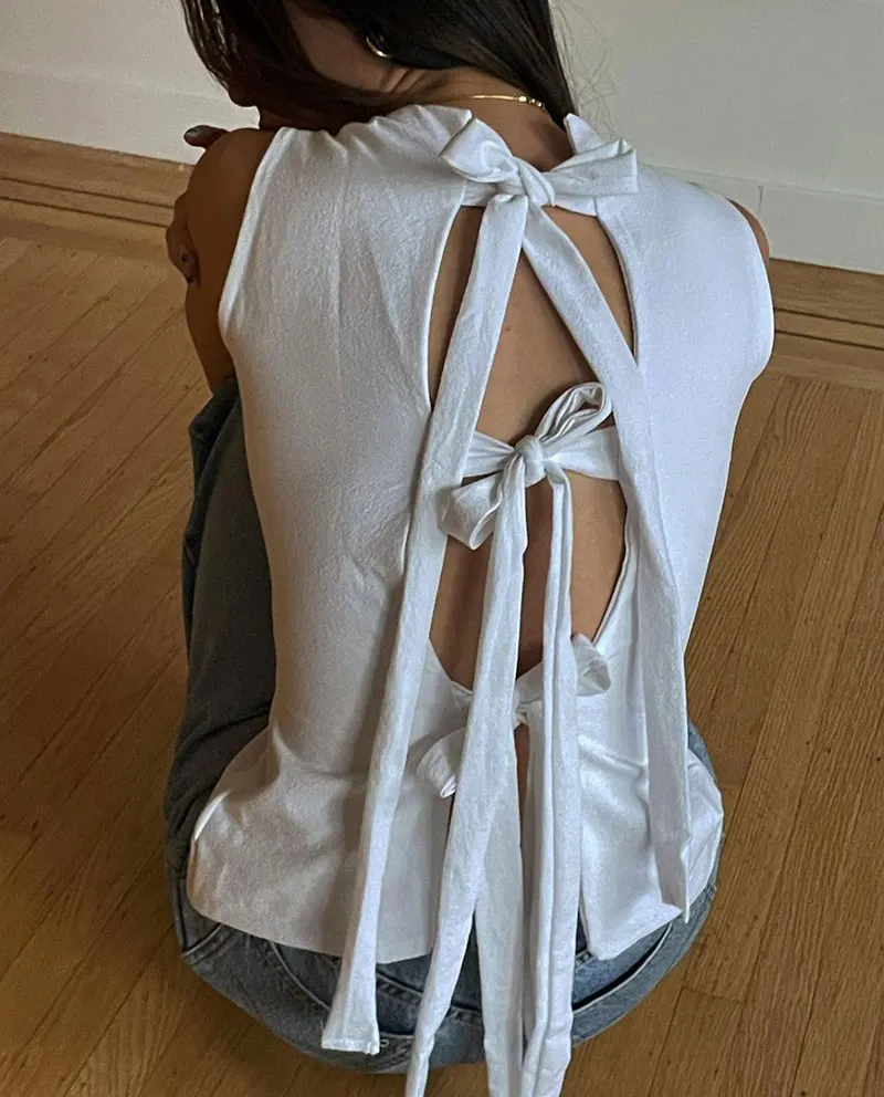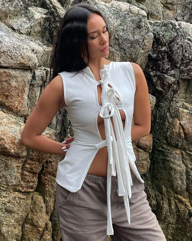 Sexy Lace-up Crop Tops for Women Summer White Black Sleeveless Hollow Out Slim Vest Lady Vacation Beach Party Tank Top