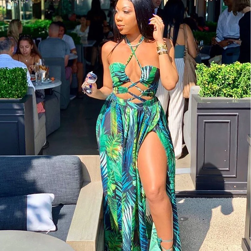 Print Sexy Beach Dress for Women 2022 Summer Casual Bandage Backless Party Long Dresses