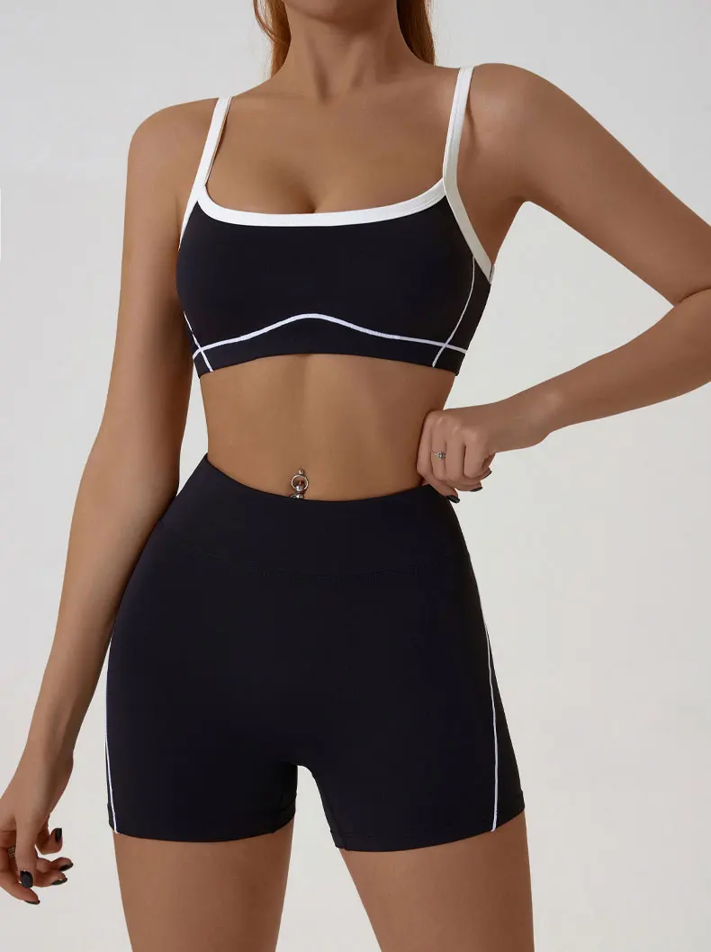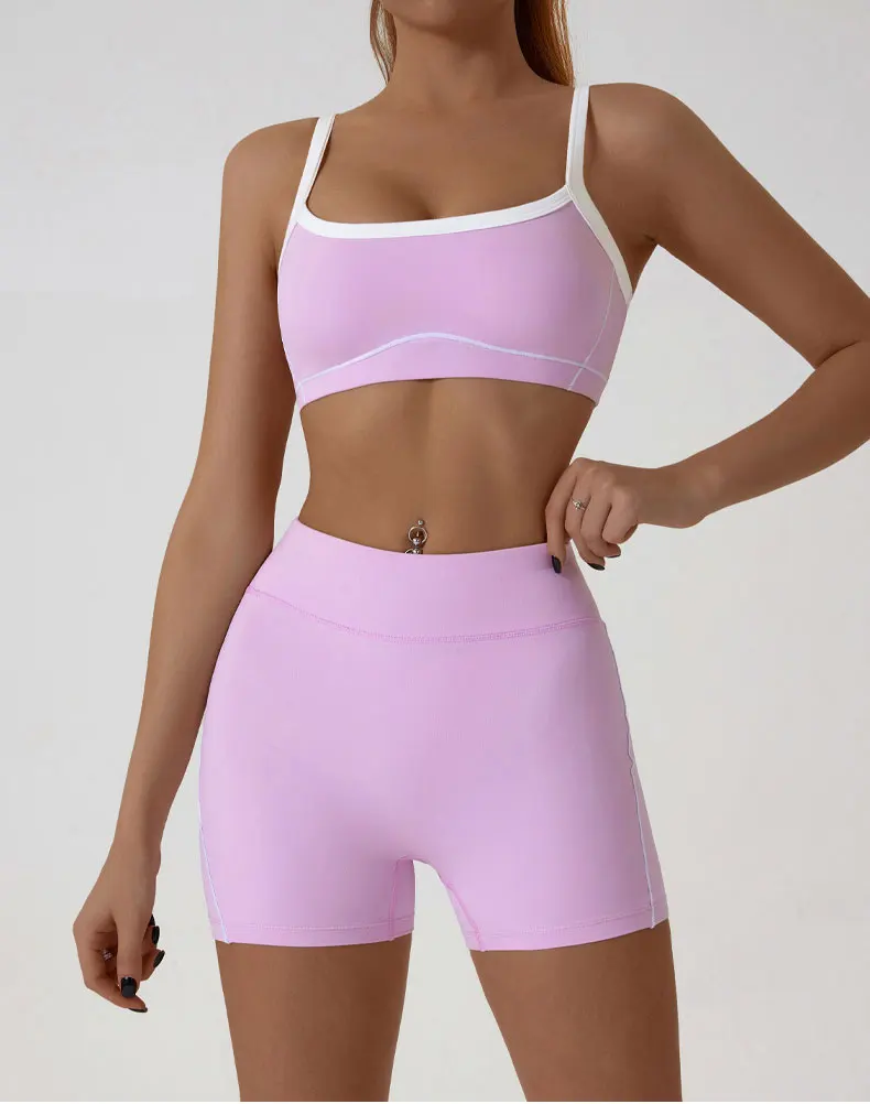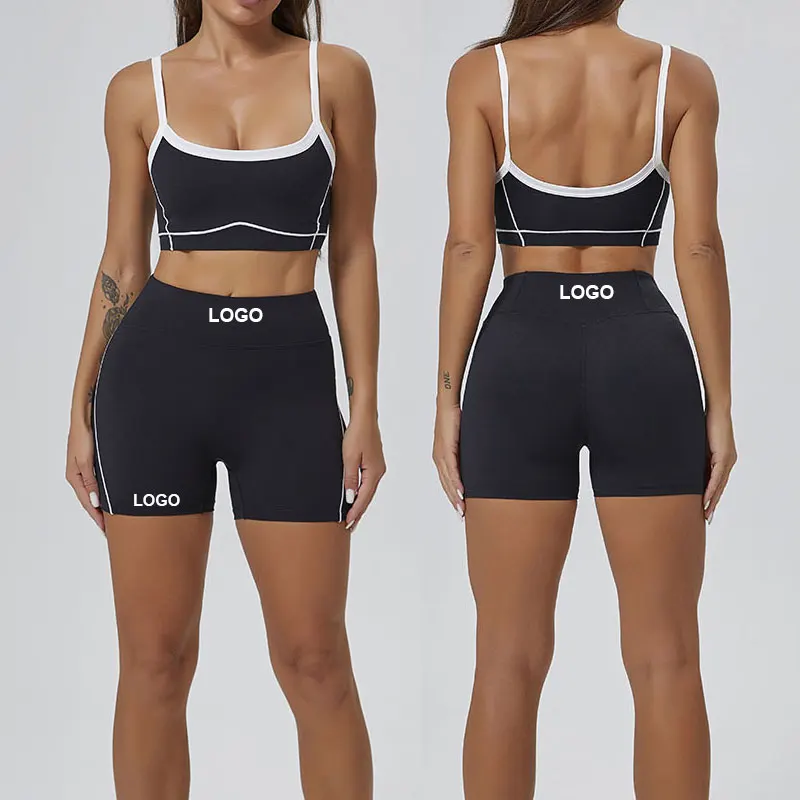Yoga Two Piece Shorts Set Sports Bra and Lift Hip Fitness Shorts Outer Wear Sports Workout Fashion Yoga Leggings Set