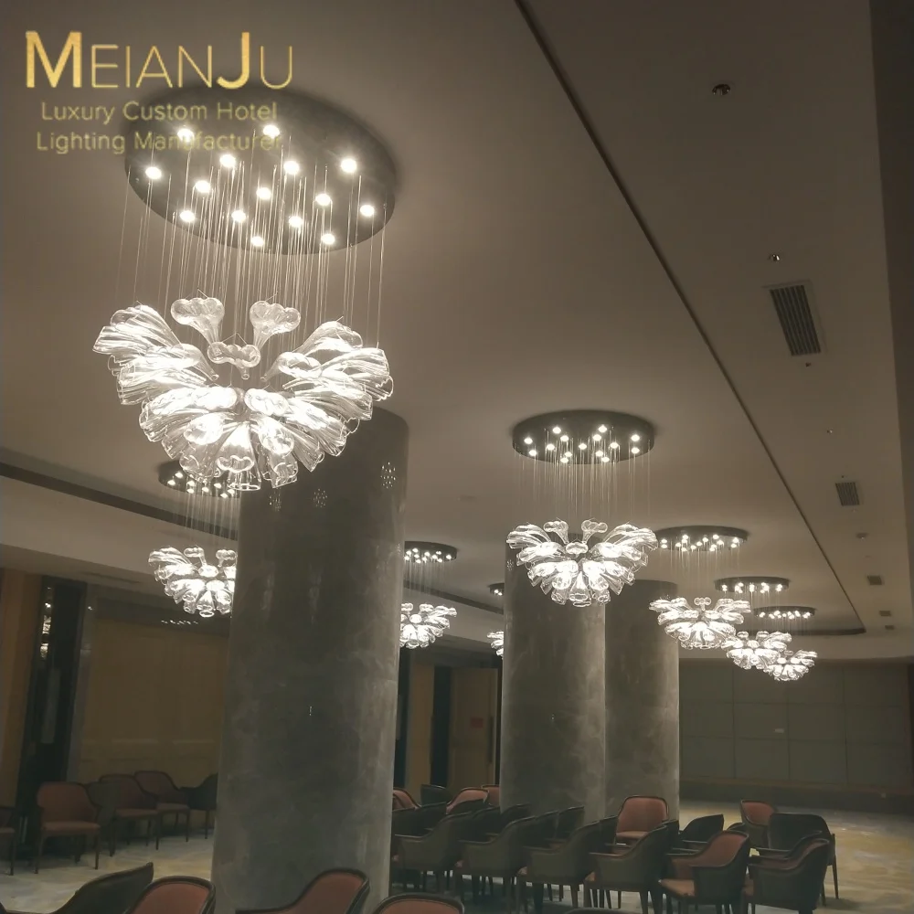 Wedding Hall Chandelier Hotel Hanging Pendant Light Customized Amber Crystal Chandelier Lighting for Lobby