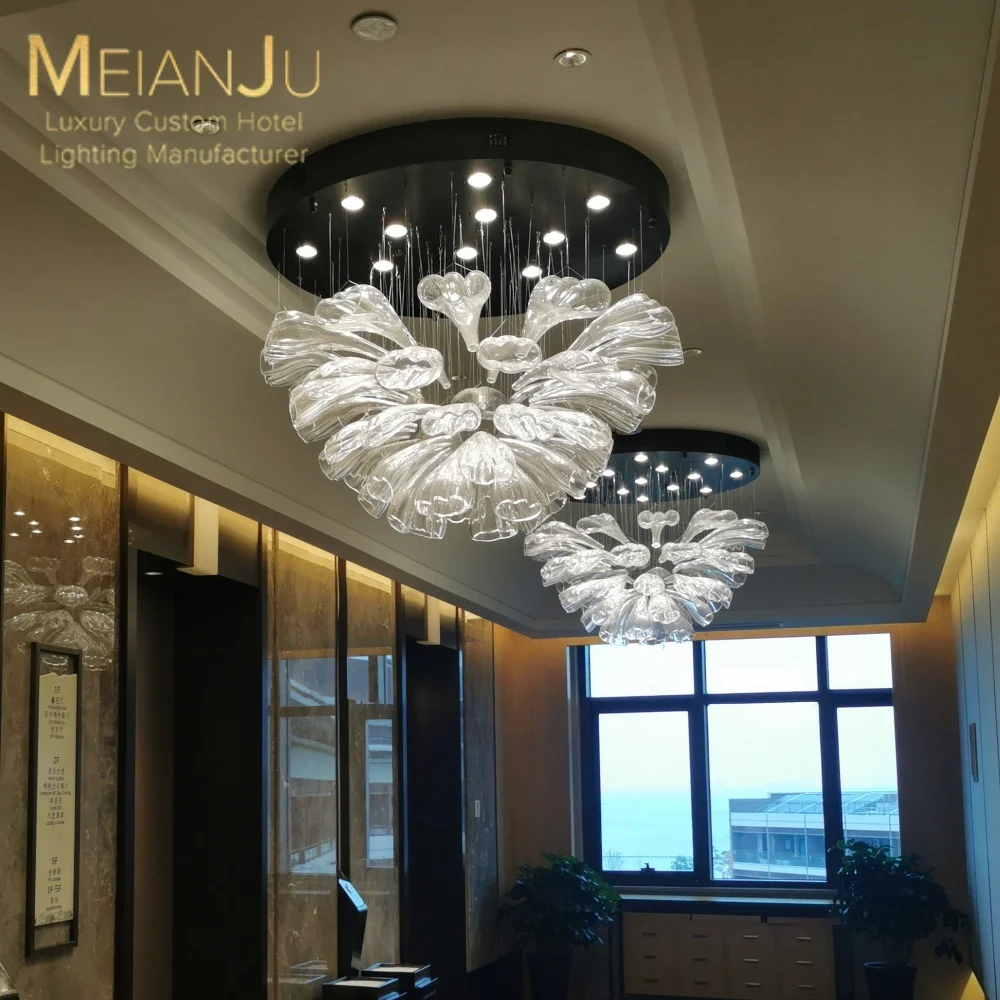 Zhongshan Crafted Modern Glass Panel Premium Chandelier Custom Luxury Indoor Hanging Light for Hotel Home Decor Lighting Fixture