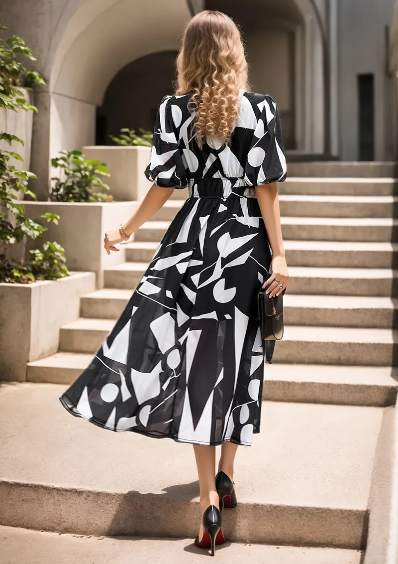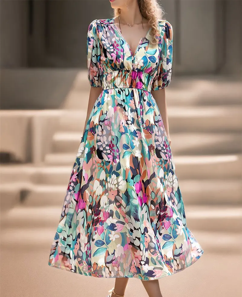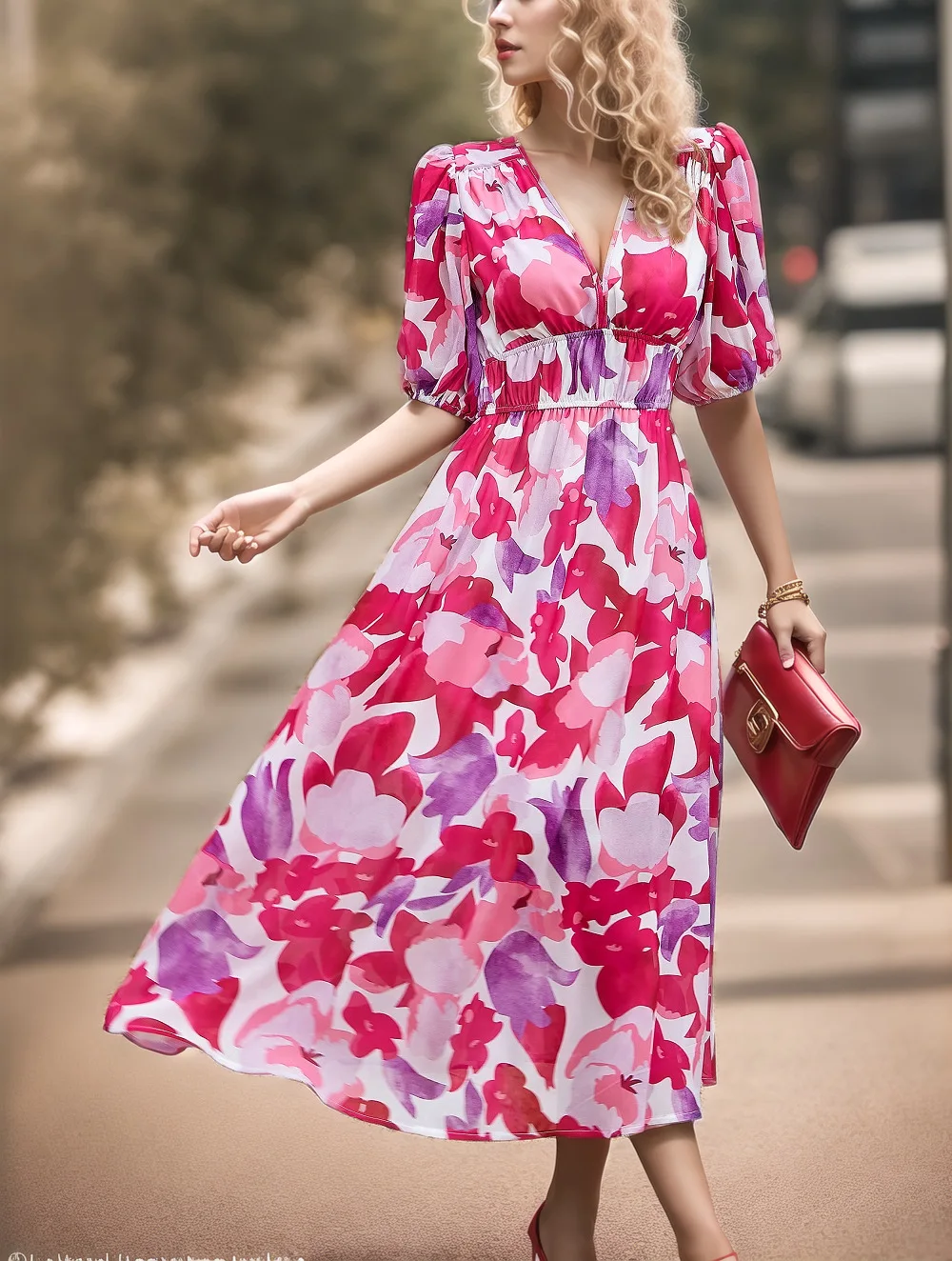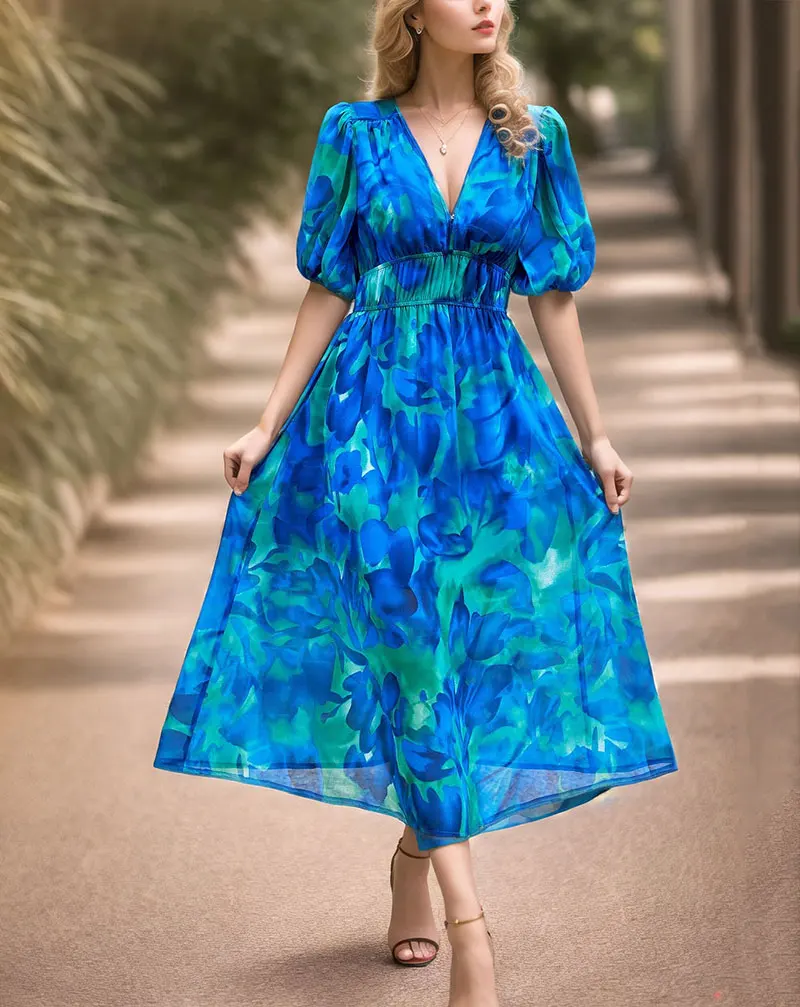 Print Elastic Waist Maxi Dresses for Women Elegant Vacation Summer Long Dress