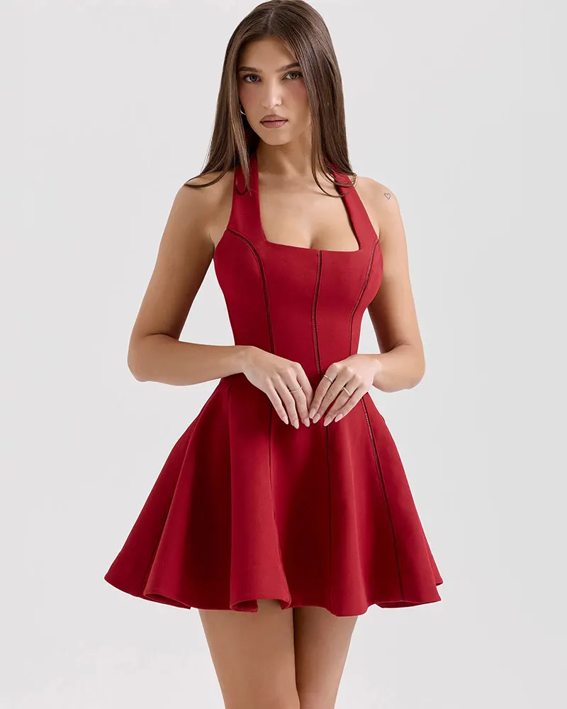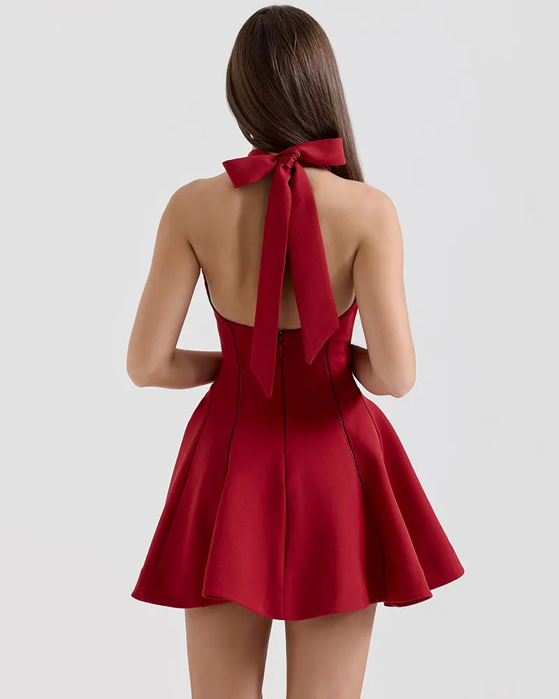 Custom Halter Sleeveless Sexy Mini A-line Dress For Women Summer Fashion Red Gown High Waist Club Party Long Evening Dress